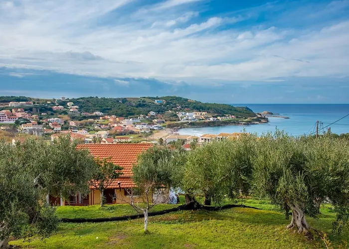 Die 6-Zimmer- Elaionas Holiday Home Studios And Apartments Agios Stefanos Avliotes liegt 4 km weit weg vom Agios Georgios Strand und lädt alle Gäste ein, verschiedene touristische Ziele in der Nähe zu erkunden. Zur Entspannung der Gäste bietet die Villa eine Terrasse, ausgestattet mit einem Sitzbereich.